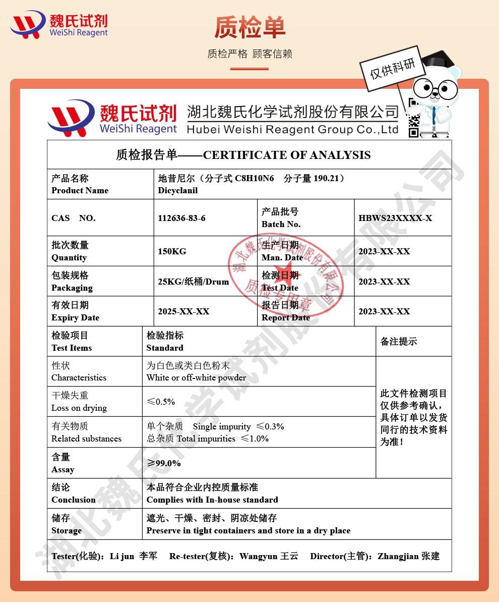 湖北魏氏化学专注打造地昔尼尔科研试剂现货供应商
