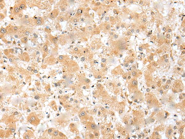 The image is immunohistochemistry of paraffin-embedded Human liver cancer tissue using (DHDH Antibody) at dilution 1/25. (Original magnification: ×200)