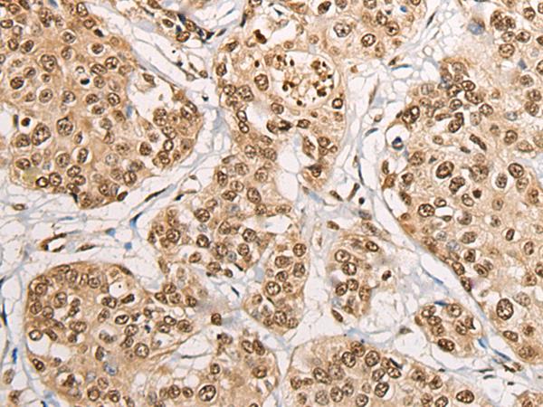 The image is immunohistochemistry of paraffin-embedded Human esophagus cancer tissue using (PHF21A Antibody) at dilution 1/50. (Original magnification: ×200)