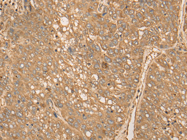 The image is immunohistochemistry of paraffin-embedded Human liver cancer tissue using (BTF3L4 Antibody) at dilution 1/30. (Original magnification: ×200)