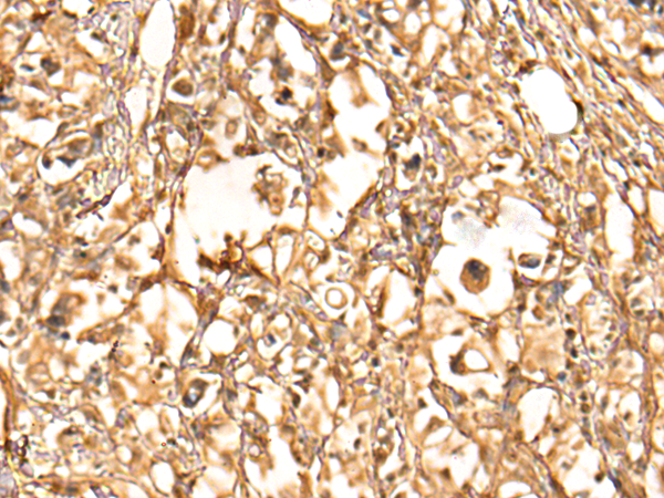 The image is immunohistochemistry of paraffin-embedded Human gastric cancer tissue using (BTF3L4 Antibody) at dilution 1/30. (Original magnification: ×200)