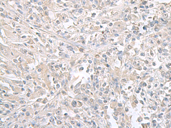 The image is immunohistochemistry of paraffin-embedded Human liver cancer tissue using (FXYD6 Antibody) at dilution 1/65. (Original magnification: ×200)