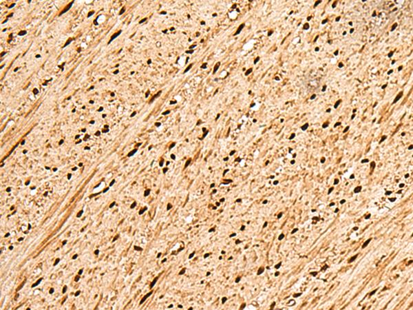 The image is immunohistochemistry of paraffin-embedded Human cervical cancer tissue using (PNRC2 Antibody) at dilution 1/50. (Original magnification: ×200)