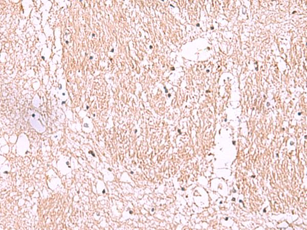 The image is immunohistochemistry of paraffin-embedded Human brain tissue using (RIC8A Antibody) at dilution 1/55. (Original magnification: ×200)