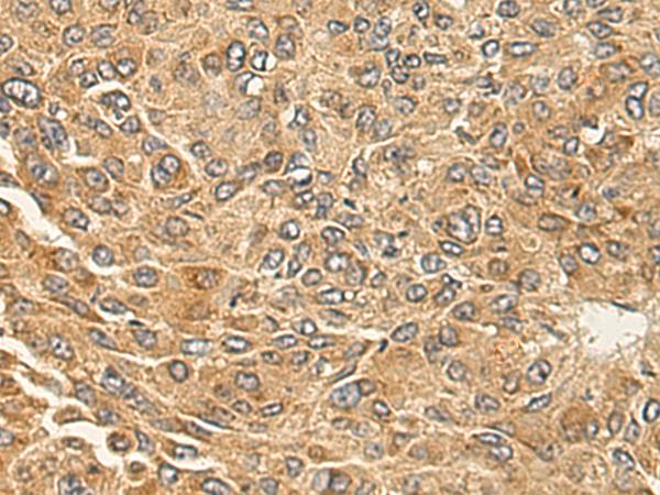 The image is immunohistochemistry of paraffin-embedded Human liver cancer tissue using (FKBP3 Antibody) at dilution 1/170. (Original magnification: ×200)