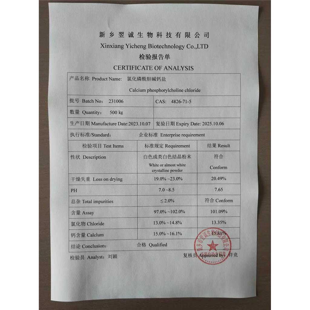 中文别名:磷酸胆碱钙 氯化磷酰胆碱 氯化磷酰胆碱钙盐四水合物