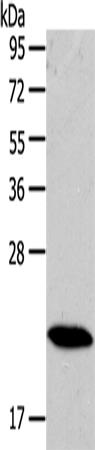 Gel: 10%SDS-PAGE, Lysate: 40 μg, Lane: Mouse heart tissue, Primary antibody: (RAB18 Antibody) at dilution 1/400, Secondary antibody: Goat anti rabbit IgG at 1/8000 dilution, Exposure time: 1 second