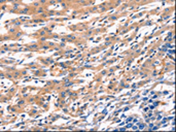 The image is immunohistochemistry of paraffin-embedded Human liver cancer tissue using (RAB18 Antibody) at dilution 1/300. (Original magnification: ×200)