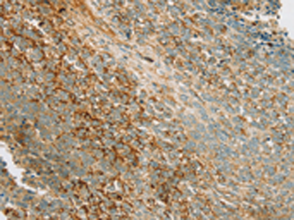 The image is immunohistochemistry of paraffin-embedded Human gastric cancer tissue using (PRKAA1 Antibody) at dilution 1/70. (Original magnification: ×200)