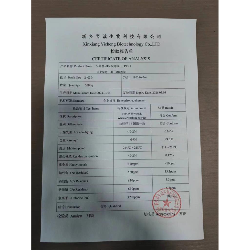 产品名称:5-苯基-1H-四氮唑 (PTZ)