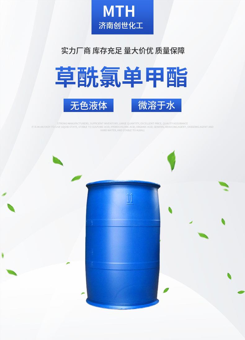 草酰氯单甲酯是一种医药、农药、涂料等的合成中间体,在医药方面用做合成抗生素的原料,在涂料方面用做甲基丙烯酞异氰酸醋的原料,农药工业用于合成超高效磺酞脉类除草剂节黄隆、植物生长调节剂等,用途十分广泛。 甲基戊酰氯;甲基草酰氯;草酰氯甲酯;草酰氯单甲酯;乙二酰氯单甲酯;草酰氯甲酯,97%;甲基戊酰氯 25G;甲基草酰氯草酰氯甲酯;甲基 草酰基 氯化物;草酰氯单甲酯(草酰氯甲酯)