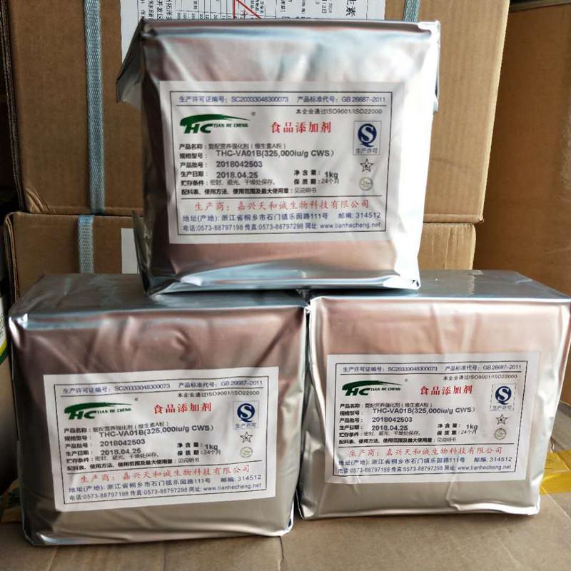 浅黄或白色具有特殊气味的粉末。把维生素A醋酸酯分散在植物油中,采用微胶囊化技术将维生素A醋酸酯均匀地包埋在碳水化合物中,通过瞬间喷雾干燥法生产出的流动性良好的微胶囊粉末。