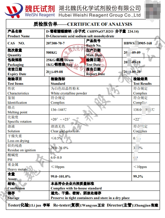 关注湖北魏氏化学葡萄糖醛酸钠科研试剂杂质分析