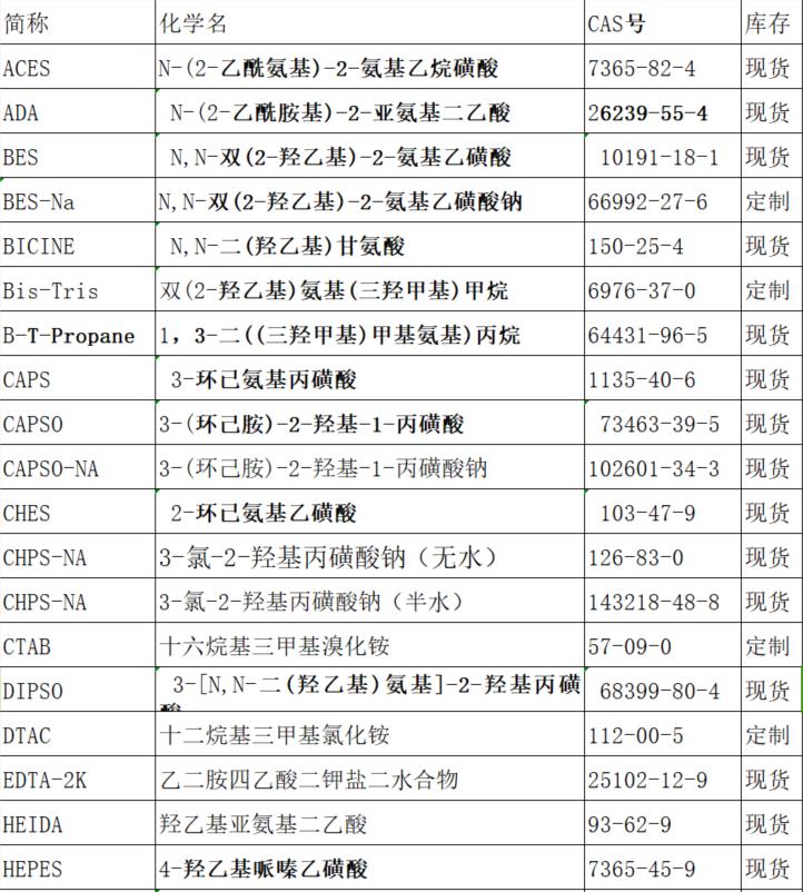 低毒性:对细胞和酶的毒性较低,适用于细胞培养和酶学研究。