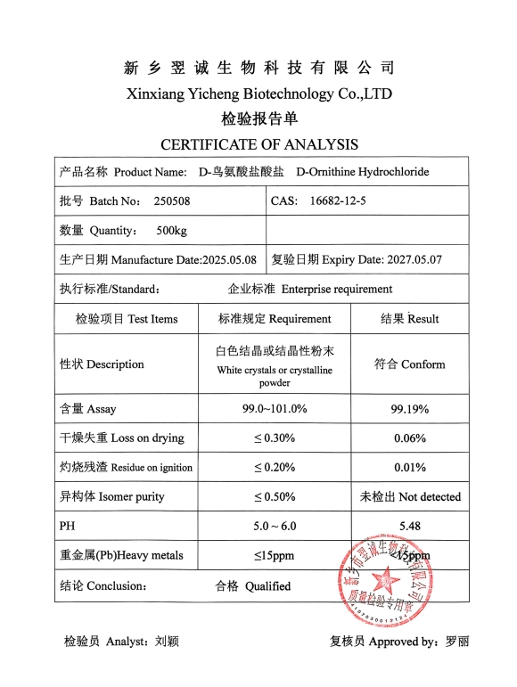 中文别名:(R)-2,5-二氨基戊酸单盐酸盐;D-氢氯鸟氨酸