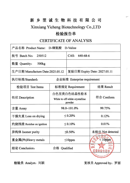 产品名称:D-缬氨酸中文别名:D-α-氨基异戊酸; D-异戊氨酸; D-A-氨基异戊酸