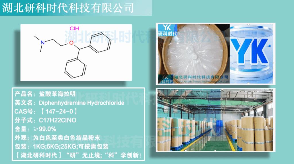 盐酸苯海拉明147-24-0;纯度≥99.0%医药中间体;湖北研科时代科技-“研”无止境;“科”学创新!检测图谱;MSDS等技术支持