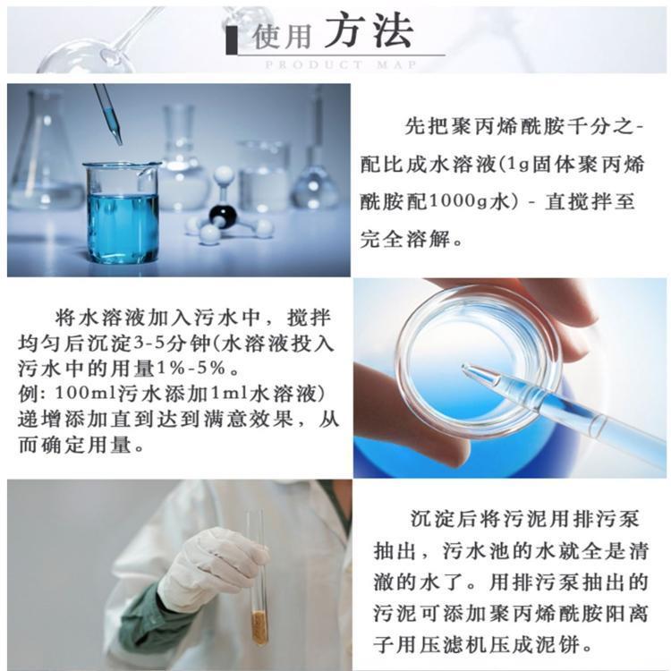 5.污泥脱水:在洗沙废水处理过程中,会产生一定量的污泥,聚丙烯酰胺能够帮助污泥脱水,减少其体积,便于后续的处理或处置。