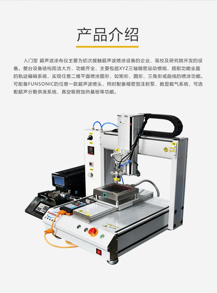 中文名称:超声雾化喷涂设备FS150英文名称:Ultrasonic Spray Coating Equipment