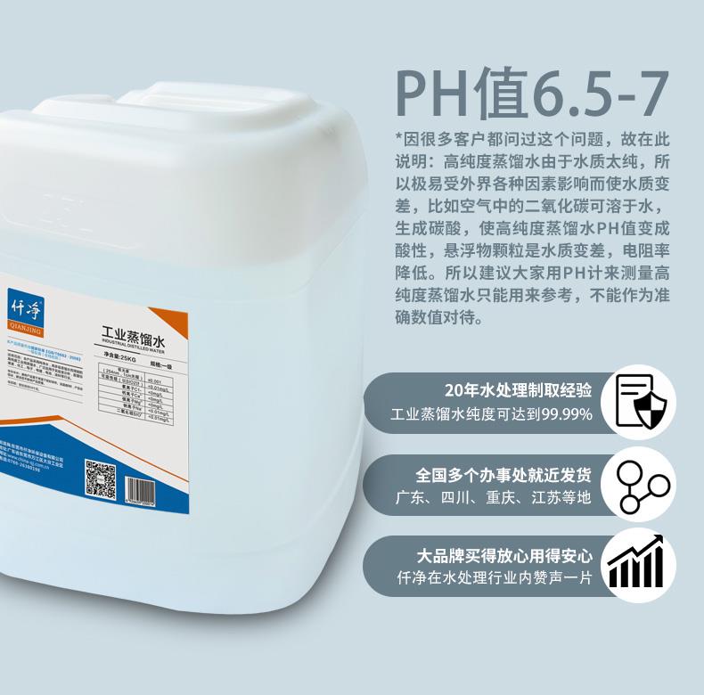 仟净牌工业蒸馏水,是采用纯水再经多级蒸馏水,源水煮沸后令其蒸发冷凝回收,要大量耗费热能,用于制作蒸馏水的源水中的其它遇热蒸发物质,也就随着蒸馏水的生成而冷凝到蒸馏水中,如对健康有害的酚类、苯化合物,甚至可蒸发的汞等。要想得到纯净水或超纯水,必须经过二次、三次的蒸馏还得增加其它蒸馏水提纯的手段。