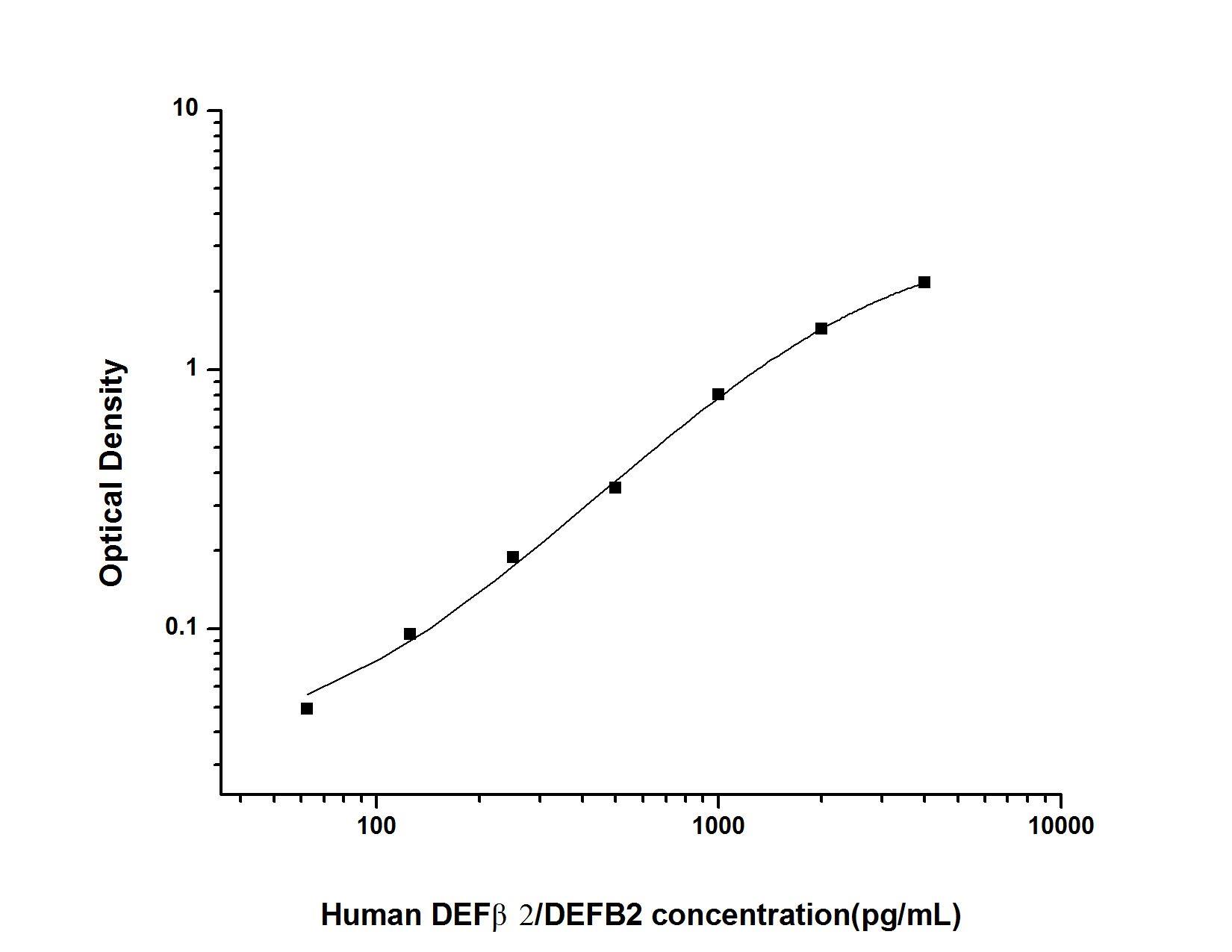 本试剂盒采用双抗体夹心ELISA法。用抗人DEFβ2/DEFB2抗体包被于酶标板上,实验时样品(或标准品)及生物素化的抗人DEFβ2/DEFB2抗体同时加入酶标板中,样本(或标准品)中的人 DEFβ2/DEFB2会与包被抗体结合,同时抗人 DEFβ2/DEFB2抗体与结合在包被抗体上的人DEFβ2/DEFB2结合,游离的成分被洗去。再加入辣根过氧化物酶标记的亲和素,生物素与亲和素特异性结合而形成免疫复合物,游离的成分被洗去。加入显色底物(TMB),TMB在辣根过氧化物酶的催化下呈现蓝色,加终止液后变成黄色。用酶标仪在450nm波长处测OD值,DEFβ2/DEFB2浓度与OD450值之间呈正比,通过绘制标准曲线计算出样品中DEFβ2/DEFB2的浓度。