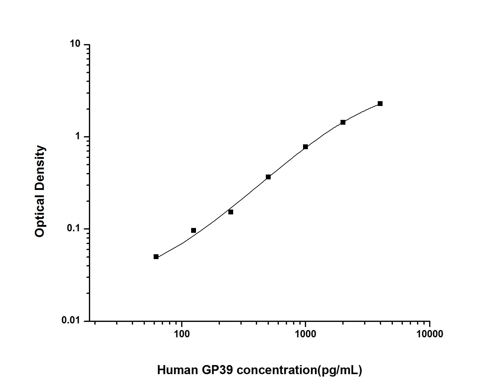 本试剂盒采用双抗体夹心ELISA法。用抗人 GP39抗体包被于酶标板上,实验时样品(或标准品)及生物素化的抗人GP39抗体同时加入酶标板中,样本(或标准品)中的人GP39会与包被抗体结合,同时抗人GP39抗体与结合在包被抗体上的人 GP39结合,游离的成分被洗去。再加入辣根过氧化物酶标记的亲和素,生物素与亲和素特异性结合而形成免疫复合物,游离的成分被洗去。加入显色底物(TMB),TMB在辣根过氧化物酶的催化下呈现蓝色,加终止液后变成黄色。用酶标仪在450nm波长处测OD值,GP39浓度与OD450值之间呈正比,通过绘制标准曲线计算出样品中GP39的浓度。