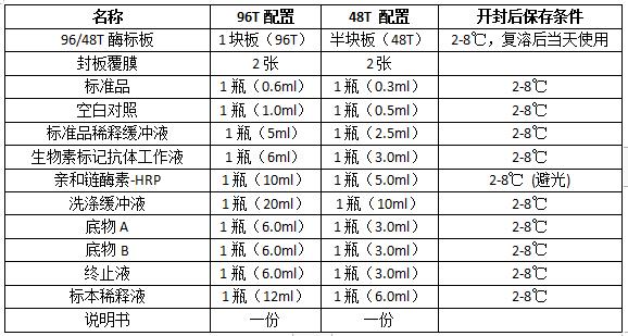 试剂盒组分及保存: