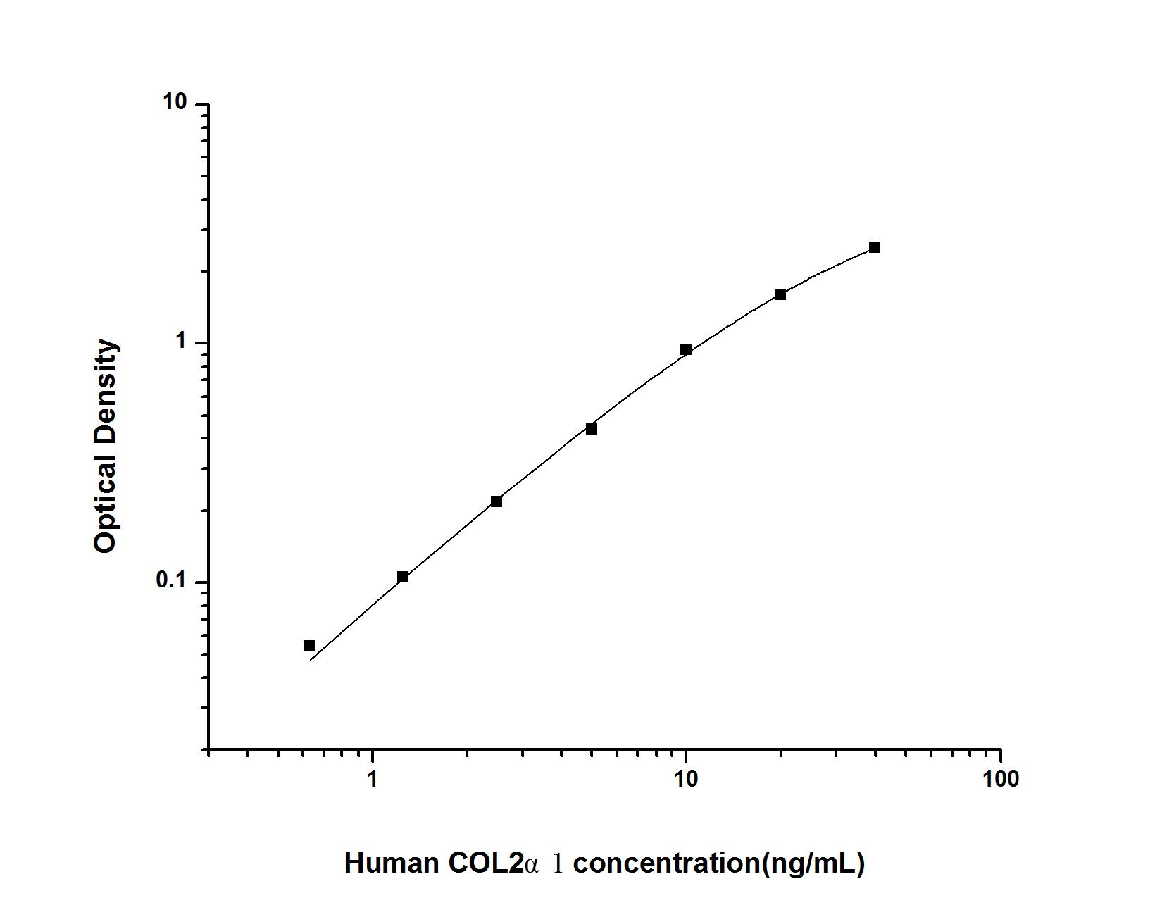 本试剂盒采用双抗体夹心ELISA法。用抗人 COL2α1抗体包被于酶标板上,实验时样品(或标准品)及生物素化的抗人COL2α1抗体同时加入酶标板中,样本(或标准品)中的人COL2α1会与包被抗体结合,同时抗人COL2α1抗体与结合在包被抗体上的人 COL2α1结合,游离的成分被洗去。再加入辣根过氧化物酶标记的亲和素,生物素与亲和素特异性结合而形成免疫复合物,游离的成分被洗去。加入显色底物(TMB),TMB在辣根过氧化物酶的催化下呈现蓝色,加终止液后变成黄色。用酶标仪在450nm波长处测OD值,COL2α1浓度与OD450值之间呈正比,通过绘制标准曲线计算出样品中COL2α1的浓度。