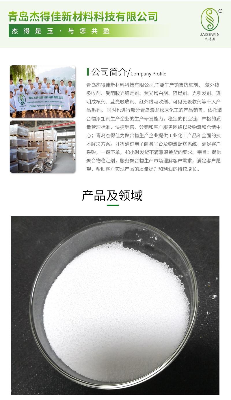 ●与受阻酚类主抗氧剂JADEWIN AN 1010,1076等具有良好的协同效果