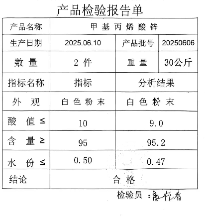 中文名二甲基丙烯酸锌 外文名Zinc dimethacrylate