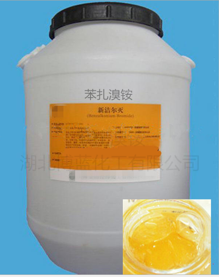 苯扎溴铵用途1.可作消毒剂、防腐剂等。用于医药、化妆品及水处理杀菌与消毒,还用于硬表面清洗及消毒去臭等。2.非氧化性杀菌灭藻剂、黏泥剥离剂和清洗剂。具有洁净、杀菌消毒和灭藻作用,广泛用于杀菌、消毒、防腐、乳化、去垢、增溶等方面。其杀菌活性优于洁尔灭,毒性比洁尔灭低。通常情况下,其使用浓度为50~100mg/L。3.本品在油田用作注水杀菌剂,具有优异的杀菌力和去污力。对金属无腐蚀作用,不污染衣服。中文别名:十二烷基二甲基苄基溴化铵;苄基二甲基十二烷基溴化铵;CAS号:7281-04-1EINECS号:230-698-4分子式:C21H38BrN分子量:384.43700熔 点:50-55°C外 观:为黄白色蜡状固体或胶状体。易溶于水或乙醇,有芳香味,味极苦包装与贮藏:包装桶净重25±0.2kg或按用户要求。储存于通风、阴凉、干燥处、密闭保存。保质期为2年。