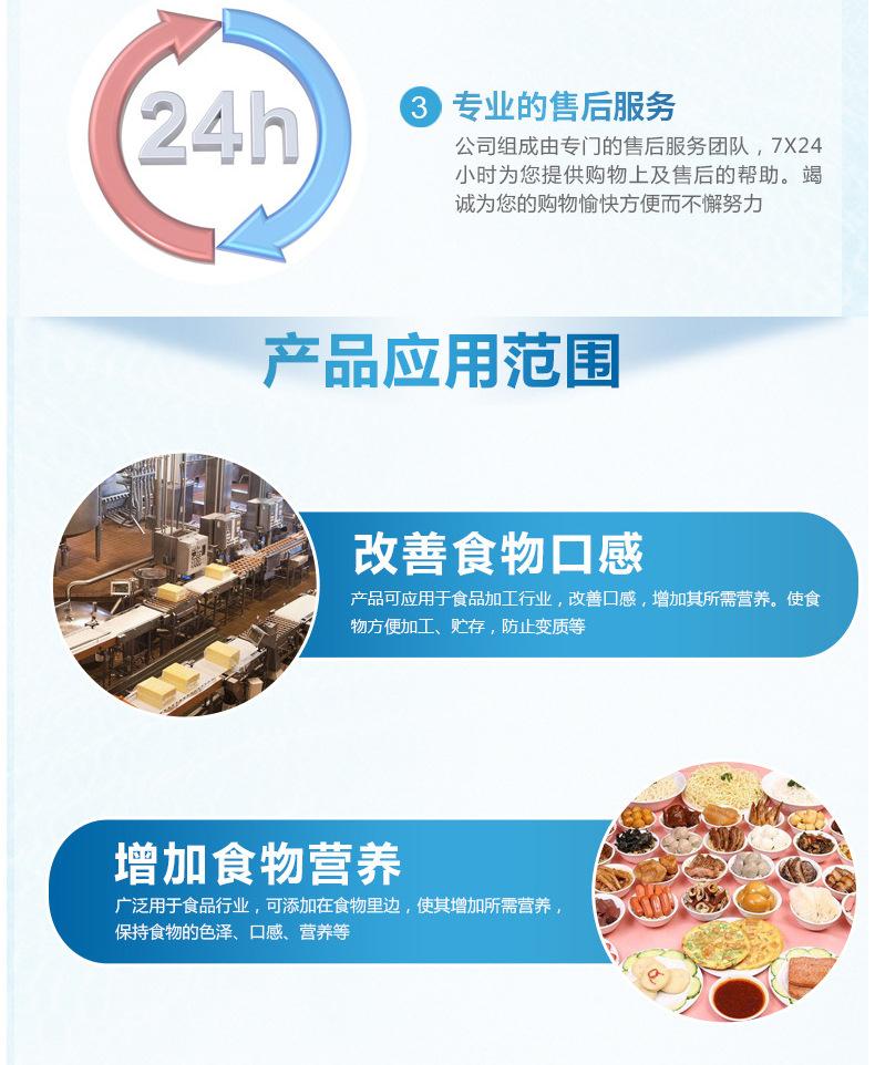使用方法:用量可按生产需要适量用于肉类罐头、调味料、糖果、饼干、蜜饯、凉果、果汁(味)型饮料