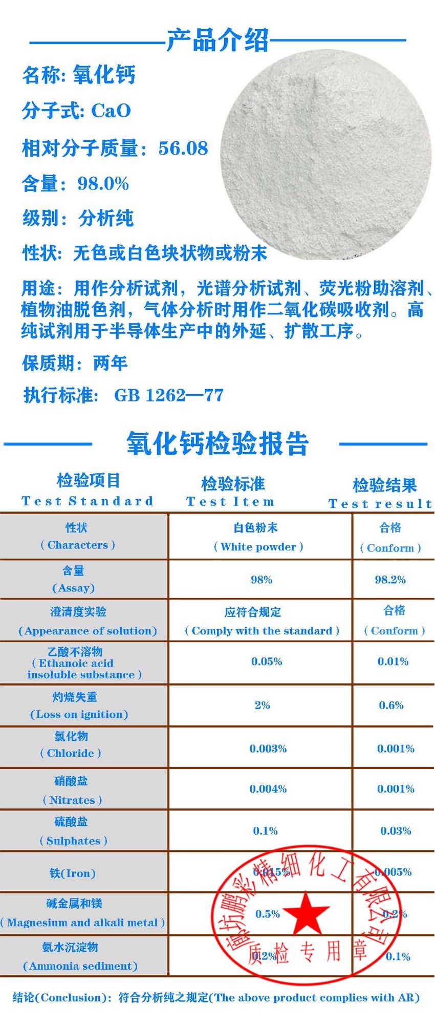 廊坊乾耀化学试剂有限公司是一家专业生产无机盐、精细化学品、化学试剂、医药辅料、食品添加剂、饲料添加剂、电子化学品、新产品开发、(货物进出口业务)可为客户提供代工和代分装试剂服务的企业。公司产品出口到欧美,中东等国家。生产基地位于拥有“京津走廊上的明珠”之称的廊坊市,占地80000多平米,其中生产面积为53360平米,库房储存面积为12000平米,为能够更好的快速、便捷的服务于各方用户,2012年在北京成立北京鹏彩化学试剂有限公司!2020年在天津成立天津乾耀化学试剂有限公司。2021年成立上海乾耀科技有限公司