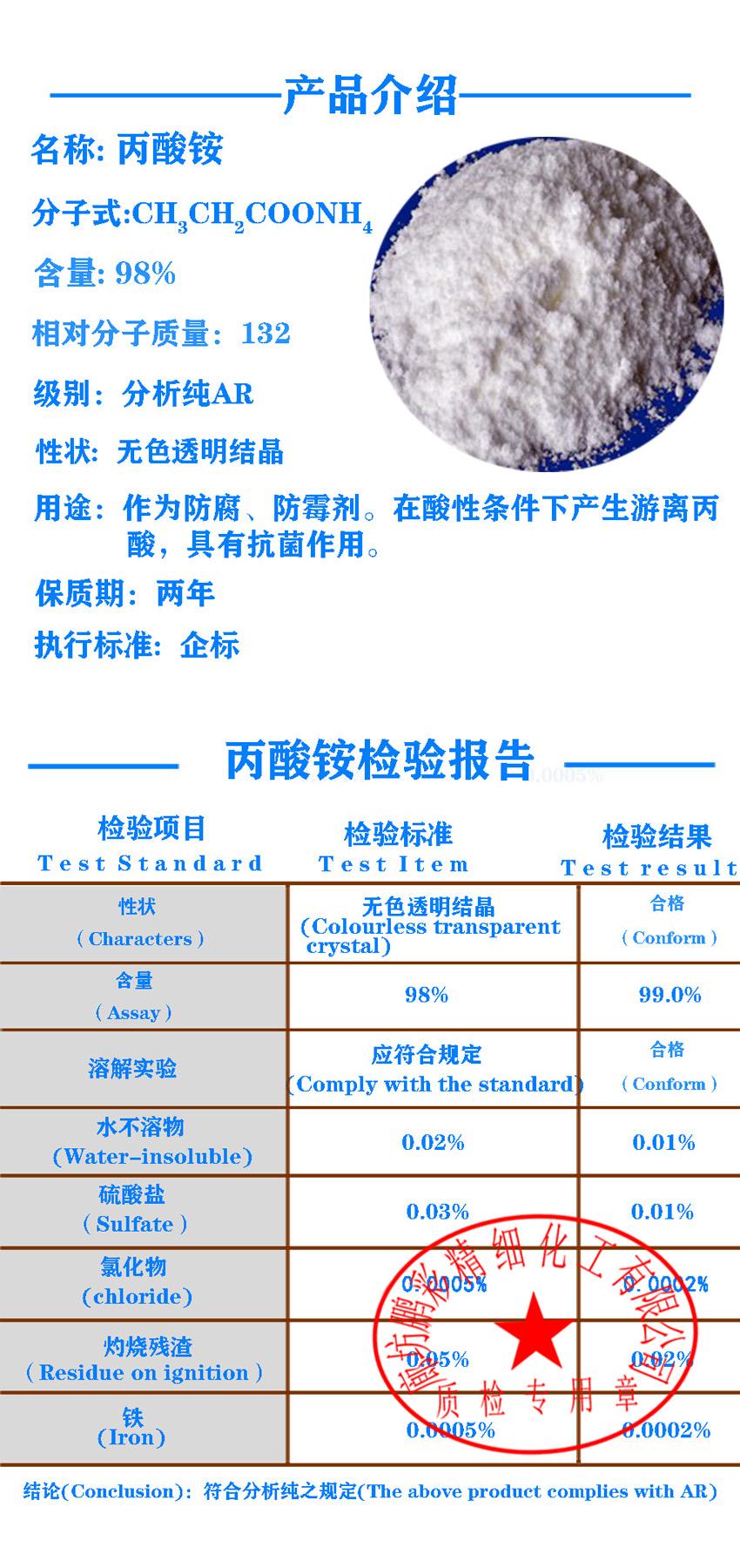 关键字: 分析纯丙酸铵;试剂级丙酸铵;丙酸铵;