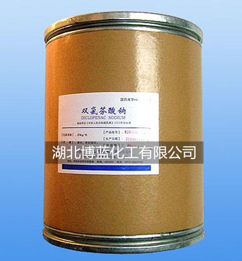双氯芬酸钠用途:解热镇痛药。用于各种发热性疾病的发热及肾绞痛、重症类风湿性关节炎及骨关节炎、急性痛风、急性外伤、骨折及手术后引起的急性疼痛的对症治疗。 产品名称: 双氯灭痛 产品类别: 医药级原料药 原药含量: 99%以上 化学式: C14H10Cl2NNaO2 分子量:318.13 CAS 号: 15307-79-6 质量标准: CP2017 性 状:白色或类白色、无臭、易吸潮的结晶性粉末,