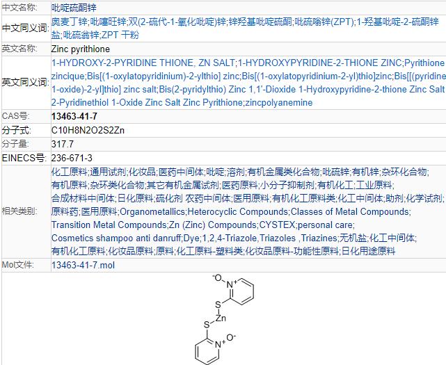 吡啶硫酮锌 吡啶硫酮锌(ZPT) 13463-41-7
