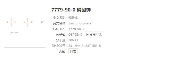 CAS号:7779-90-0分子式:O8P2Zn3分子量:386.11
