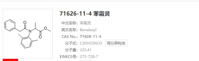 中文同义词:本达乐;灭菌安/苯霜灵;灭菌安;甲醇中苯霜灵;苯霜灵溶液,1000PPM;苯霜灵标准品;苯霜灵溶液,100PPM;6-二甲基苯基)-DL-ALPHA-氨基丙酸甲酯英文名称:Benalaxyl