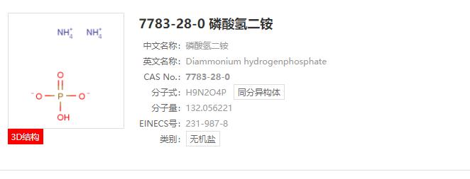 中文同义词:二盐基磷酸铵;磷酸氢二铵(DAP);磷酸氢二铵1KG;磷酸二;磷酸氢铵,98%;磷酸氢铵,TECH.,P{2}O{5}53%MIN;磷酸氢铵,ACS,98.0%MIN;食用磷酸二铵英文名称:Ammoniumphosphatedibasic英文同义词:SEC-AMMONIUMHYDROGENPHOSPHATE;SECAMMONIUMPHOSPHATE;PHOSPHORUSICPSTANDARD;phos-chek202;phos-chek259;phosphatedibasiqued’ammonium;Phosphoricacid,diammoniumsalt;secondaryammoniumphosphateCAS号:7783-28-0分子式:H9N2O4P分子量:132.06