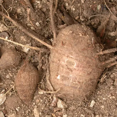 白附子为天南星科植物独角莲Typhonium giganteum Engl. 的干燥块茎,秋季采挖,除去须根及外皮,晒干。本品呈椭圆形或卵圆形,长2~5cm,直径1~3cm。表面白色至黄白色,略粗糙,有环纹及须根痕,顶端有茎痕或芽痕。质坚硬,断面白色,粉性。无臭,味淡、麻辣刺舌。用于卒中,口眼歪斜,半身不遂,面神经麻痹,偏头痛,破伤风。
