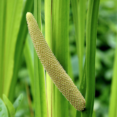 菖蒲(学名:Acorus calamus):也叫做白菖蒲、藏菖蒲。多年生草木,根状茎粗壮。叶基生,剑形,中脉明显突出,基部叶鞘套折,有膜质边缘。生于沼泽地、溪流或水田边。菖蒲的根和叶均具有抗氧化、抗菌和杀虫作用。菖蒲在中国和印度草药传统中具有非常悠久的药用历史。其叶、茎和根用于各种悉达和阿育吠陀药物。它因其镇静、通便、利尿和驱风特性而广泛应用于现代草药中。在阿育吠陀中,它用于抵消所有致幻剂的副作用。