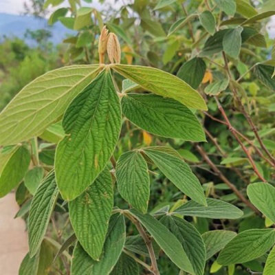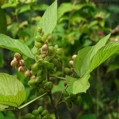 大叶千斤拔,又名天根不倒、假乌豆草、皱面树、千斤红等,是豆科千斤拔属植物。以根入药,根呈长圆锥形,不分枝或少分枝,形似牛尾,长30~70cm,直径0.5~1.5cm。表面灰棕色或红棕色,有细纵纹及横长皮孔样斑痕;顶端有圆形疤痕和茎残基,下部渐细。质硬,断面纤维性,皮部薄,棕红色;木部黄白色,具放射状纹理。微具豆腥气,味微甘涩。全年可采挖,除去泥沙,洗净,趁鲜切断,干燥。