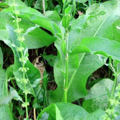 高大草本,茎多挺直,高80-20cm。基生叶,叶柄半圆柱状;叶片及灰绿色,卵心形至宽卵形,先端钝急尖,基部心形,边缘稍波状到稍皱波状,两面光滑无毛;茎生叶较小,叶两较短,叶片卵形至卵状披针形;托叶鞘抱茎,长5-8cm,外面粗糙。大圆锥花序,2-3次分枝;花较大,小花梗纤细;花被片长椭圆形,背部绿色,具稀网状脉,边缘近白色;雄蕊与花被近等长;雌蕊花柱较短,横展,柱头小,圆头状。果实圆形至近圆形,长宽近相等。种子宽卵形。