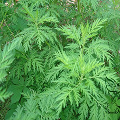 青蒿:二年生草本。茎直立,上部多分枝,具纵棱线。叶子互生,茎中部的叶子二回羽状分裂,线形小裂片。夏季开花,头状花序半球形,多数,成圆锥状,花管状,外面为雌花,内层为两性花。青蒿味苦、辛,性寒,有退虚热,凉血、解暑、治疟的功效。