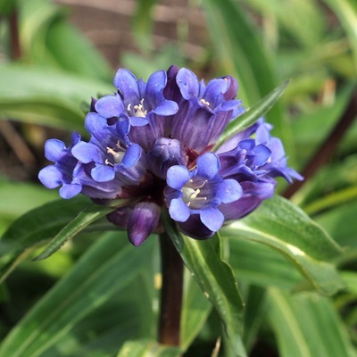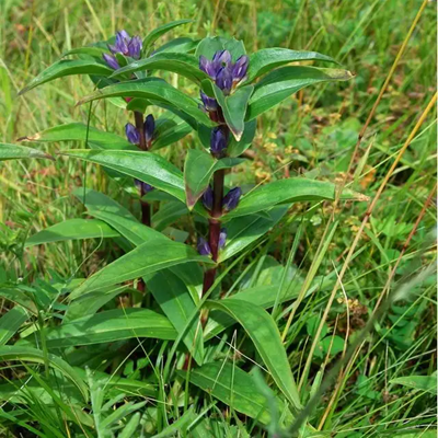 多年生草本,高20~60厘米。主根粗长,扭曲不直,近圆锥形,根茎部有许多纤维状残存叶基。茎直立或斜生。叶披针形或长圆状披针形,基生叶多数丛生,全缘,主脉5条,茎生叶3~4对,较小,对生。花多集成顶生及茎上部腋生的轮伞花序,花萼管一侧开裂,略呈佛焰苞状,萼齿浅,花冠管状,深蓝紫色,长约2厘米,先端5裂,裂片间有5片短小褶片,雄蕊5枚,子房长圆形,无柄。蒴果长圆形或椭圆形。
