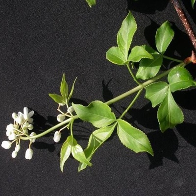 多年生小乔木或落叶灌木,树高1-3米,枝圆柱形灰白绿色,叶对生羽状复叶纸质长圆形至长圆状椭圆形基部宽楔形,边缘具疏圆齿或锯齿两面无毛,圆锥花序顶生花较多疏松花小白色,果近球形幼时绿色转红色干后黑色表面粗糙,先端具小尖头花盘宿存,有种子2-3颗,花期4-6月,果期7-9月。