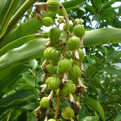 砂仁是一种姜科植物,生长于东南亚和华南地区。与豆蔻类似,砂仁的果实被人们种植,成熟后干燥后结成豆荚,其中含有香气浓郁的种子。豆荚可用于中餐调味汤品,也可用于中药治疗胃痛和痢疾。
