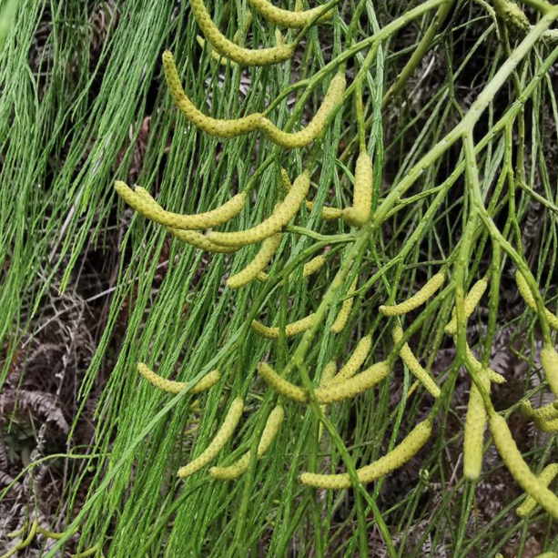 大型土生蕨类植物。地上主茎木质藤状,圆柱形。叶螺旋状排列,贴生,卵状披针形或钻形,基部突出,弧形,无柄,先端渐尖,具膜质。不育枝黄绿色,圆柱状,多回不等位二叉分枝;小枝扁平状;叶螺旋状排列,钻状。能育枝红棕色;小枝扁平,多回二叉分枝;叶螺旋状排列,鳞片状。孢子囊穗生于孢子枝顶端,排成圆锥形,红棕色;孢子叶宽卵形;孢子囊生于孢子叶腋,圆肾形,黄色。