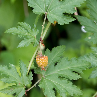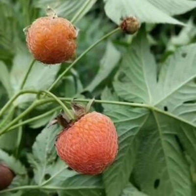 甜茶为蔷薇科悬钩子属落叶灌木。树高1-3米;小枝光滑无毛,常带白粉;叶片呈掌状;花开放时呈白色,有5片花瓣;聚合果,呈卵球形,幼时灰青色,熟时橙红色,味甜可食。种子褐色,呈椭圆形,有纵脉纹;花期7-8月;果期11-12月。