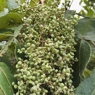 野漆树又叫染山红、臭毛漆树、山漆、山贼仔、漆树等,是一种分布在我国华北、华东、中南、西南及台湾等地的乔木植物。它也是一种在中医上常见的中药材,它的用药部位为是野漆树的根和叶,具有散瘀止血,解毒的功效。对于咳血,吐血,外伤出血,毒蛇咬伤等疾病都有较高的药用价值。